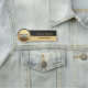 This name tag design is special for its premium, high-contrast, horizontal split design. It features a sharp division between solid black and solid gold metal, creating a strong, executive look. The circular left end highlights the customizable chrome logo on a brushed gold background. This badge is ideal for management, high-end retail, or luxury service industries seeking a classic but bold aesthetic.