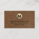 Höj ditt varumärke med det här förstklassiga affärskortet för läderutskrift som har en lyxig guld-monogramdesign. Det här affärskortet är tillverkat av högkvalitativa kardellager med ett brunt lädertexturerat tryck, och det är sofistikerat och professionellt. Anpassa den med dina egna uppgifter och gör ett bestående intryck på dina klienter och associerade.