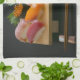 The nigiri sushi is neatly arranged on a wooden board, creating a dignified appearance that evokes Japanese tradition.