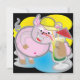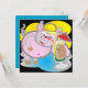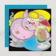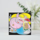För försäljning en fyrkantig inbjudan med en coola gris som dricker en cocktail. I baksidan, en blå bakgrund med skrivan "Låt oss party!!!!!"