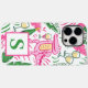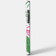 Visa av stil med den här lekfulla telefonväskan med chic som innehåller en liten alligator som håller ett vin-glas, omgivet av vin flaskor, glas och tropiska handflatan löv i ett upprepat mönster. Lägg till ditt monogram för en personlig. Perfekt för vin älskare, det kustlevande fläkt, eller någon som kärlek en individ för roligt med en tropisk snodd.