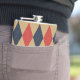 Elevate groomsmen gifts or personal milestones with this custom argyle monogram flask. Crisp diamonds wraps seamlessly around the 8oz stainless steel body, framing a bold vertical name and date on the back— centered for a sleek, tailored look.