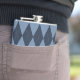 Elevate groomsmen gifts or personal milestones with this custom argyle monogram flask. Crisp diamonds wraps seamlessly around the 8oz stainless steel body, framing a bold vertical name and date on the back— centered for a sleek, tailored look.