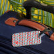 Preppy Basket Weave – Red & Turquoise Monogram Bagagebricka