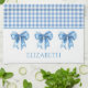 Preppy Blue and White Gingham and Bow Kökshandduk