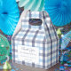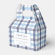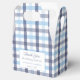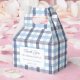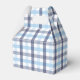 Denna blå plaid box-design skulle fungera perfekt för en babydusch att välkomna en pojke, eller för en födelsedagsfest för en smart man i alla åldrar.