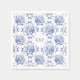 Preppy Blue Toile Hydrangea Bow med Namn Pappersservett