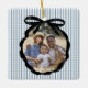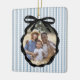 Festive Preppy Indigo Ice Blue Rand Mönster med Black Ribbon Bow Photo Ram, julprydnad.