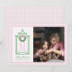 Julkortet har en Preppy Chinoiserie-design med en grönt bamboo pagoda ram med en julkrans med rosa båge. Grund har en grönt som säger "God jul". Du kan anpassa dig med namn och ditt första. Baksidan har en samordnande mönster.