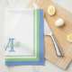 Preppy CornblommBlue and Sage Grönt Monogram Kökshandduk