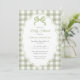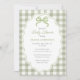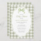 Preppy Doodle Frame Green Gingham Bow Baby Shower Inbjudningar