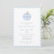 This baby shower invitation features a hand-painted blue and white gingham plaid pumpkin and scallop edge border. The reverse of the invitation is a simple blue and white gingham pattern to match the front. Shown here with text for a baby shower but all wording can be customized to your event.