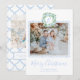 Monogram Grandmillennial Julkransslingor Högtidskort med blåa slingor, anpassningsbart julkort med foto och redigerbar text.