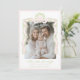 Preppy Grandmillennial Rosa Slingband Rosett Garland Julkort , anpassningsbart julkort med foto och redigerbar text.