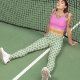 Visa upp din kärlek till pickleball var du än går med dessa söta mönstrade leggings. De har illustrationer av hjärtformade pickleball-paddlar i gröna och rosa picklebollar mot en grön-vit gingham-mönstrad bakgrund.