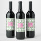 Preppy Grönt Trellis Bamboo Mönster Monogram Vinflaska Etikett