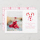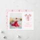 Preppy jul vattenfärg godisstavar rosa slingor julkort, anpassningsbart julkort med foto och redigerbar text.