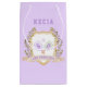 Slå ihop din gåva med den här vackra personligen pickleball födelsedagssäck. Den här designen har en vattenfärgsbild av en vapensköld omgiven av grenar med lila gingham-pickleball-paddlar i mitten. Texten säger "Grattis på födelsedagen". Färg som används omfattar större grönt, lavender och tan. Du kan anpassa dig med namn och födelseår.
