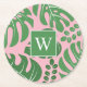 Preppy Monogrammed Monstera Handflatan Löv Underlägg Papper Rund