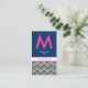 Preppy Monogramsparrevisitkort - rosa/marin Visitkort
