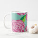 Inspirerad mugg för lilja Pulitzer. Rosa ros på en krickabakgrund.