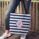 Klassiskt nautiskt remsat till väskan har ett brett, vågrät marint blått och vitt rand med ett cirkelrep-emblem som håller ditt tre första monogram vid rosa av ljus magenta. Anpassa med initialer genom att använda fält som medföljer en roligt och en funktionell tote-väska som är unik för din egen!