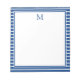 Det här söta monogrammade anteckningsblocket har klassiskt marint blått och vitt rand. Anpassa monogrammet efter ditt inledande val.