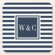 Preppy Navyblå och Vit Randig Monogram Underlägg Papper Kvadrat