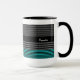 Preppy manar en modemugg med nya kricka- och svartrandar på grunden och en trendigsvart och grå färg görade randig mönster på vila av fodral. Personifiera, genom att tillfoga ditt namn till denna moderna samtidaa stilmugg.