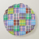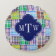 Preppy Patchwork Madras Navy Quatrefoil Monogram Rund Kudde