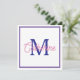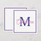 Preppy Pink and Navy Blue Simple Monogram Anteckningskort