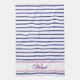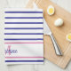 Preppy Pink and Navy Blue Stripe Simple Monogram Kökshandduk