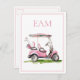 This cute monogrammed postcard features a preppy golf cart in soft watercolor shades of pink. Personalize the monogram on the front with your choice of initials.