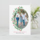 Ett vismiskt och diskret helgdag-fotokort med en ovalbar julkrans ram kring ditt familjefoto. Omfattar löv och bär i rött. Anpassa Julhälsningar och text vid grund.