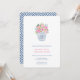 Blå och vit vas i form av gingerkärla fylld med rosa blommor, grönt och små orangefärgade kvistar. Alla element är handmålade av mig i akvarell innan de skannats till digital form. Baksidan har ett "Greek Key"-mönster. Jag har ställt in mallen för en bröllostid men alla textfält är anpassningsbara efter dina behov. På baksidan kan du ändra kontrastfärgen (visas här som en mörkblå) till valfri färg genom att gå in i designverktyget (under området för textanpassning, klicka på "anpassa ytterligare") och sedan ändra bakgrundsfärgen på baksidan.