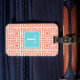 Preppy Square Lattice Monogram - Coral & Turquoise Bagagebricka