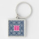 Preppy Square Lattice Monogram - Navy & Hot Pink Fyrkantig Silverfärgad Nyckelring