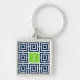 Preppy Square Lattice Monogram - Navy & Lime Fyrkantig Silverfärgad Nyckelring