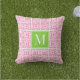 Preppy Square Lattice Monogram – Pink & Lime Kudde