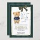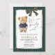 Preppy Teddy Bear Blue Green Baby Shower Inbjudningar
