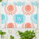 Preppy Tennis Laurel Wreath - Coral & Turquoise Kökshandduk