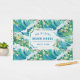 I den här gästdesignen i bok finns en vinkar avtryckt häcktropisk strand med blommor flytande på vågar. Du kan anpassa dig med din familj namn, ditt Luft BNB namn eller din plats. Den här gästen bok är perfekt för ett semesterhem eller en hyra.