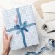 Preppy Watercolor Blue Gingham Wrapping Papper
