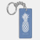 This cute personalized keychain features classic white pineapples on a background of soft blue. Personalize with your choice of name and special text the front and back. Great for personalized party favors and gift bags.