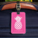 This cute personalized luggage tag features a classic white pineapple on a background of bright girly pink. Personalize with your choice of name or special text on the front and contact information on the back.