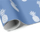 This cute gift wrap features classic white pineapples on a background of soft blue.