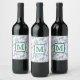 Preppy White Zebra Martinis Grönt Monogram Vinflaska Etikett