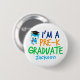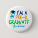 En förskoleknappen personlig för coola för ett barn som tar examen från Pre-K och flytta på till dagis. Den har en söt blå uggla med en studentmössa och en rulla bredvid ett roligt med blått, orange och grönt. Anpassa med förfärarens namn i blått.