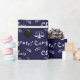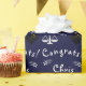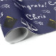 Kreativ present till juristexamen med presentpapper och dekor till examensfest med marinblå bakgrund. Anpassa texten genom att lägga till examenens namn.