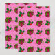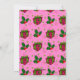 Det här julkortet har retro röda julklappar med gröna band på en rosa bakgrund med julmurgröna blad och bär.